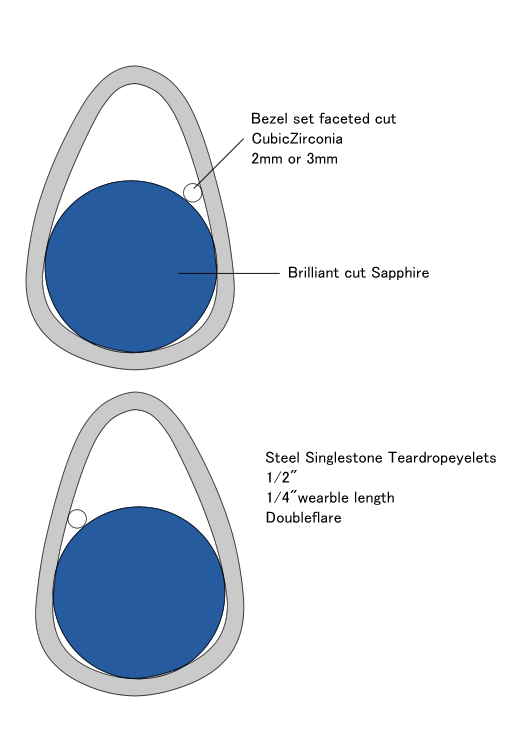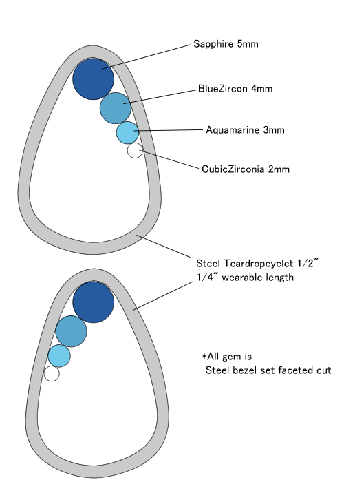 最初はSingleStoneTeardropeyeletsのSapphireで無難に行こうかと思ったのですが